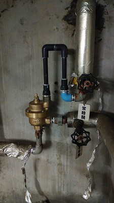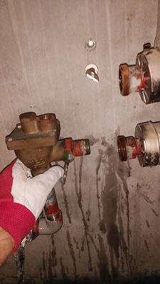 そこで水槽内の水をポンプで排水する作業から始め、排水後、副弁の交換と同時に古い配管も交換作業を行います。