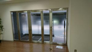 室内が丸見えなのでガラスにシートを張って目隠をしました。