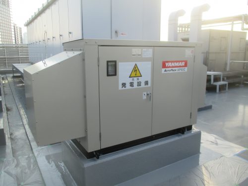 自家用発電機とは停電時やビルに供給している電源がストップした場合、 自動的に電源の供給をバックアップしてくれる装置です。