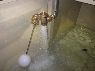 作業後、受水槽内の清掃を行います。新設した定水位弁も問題無く動作しています。