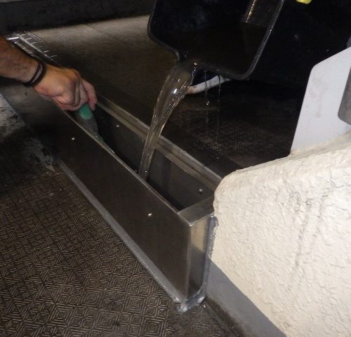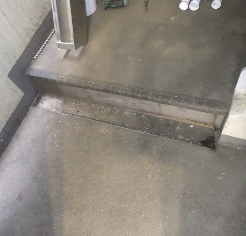 この問題に対処するため、階段に新しい排水先とステンレス枠の排水溝を新設することしました。