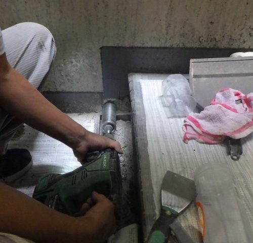 防水処理と通水確認を行い、工事は終了です。
