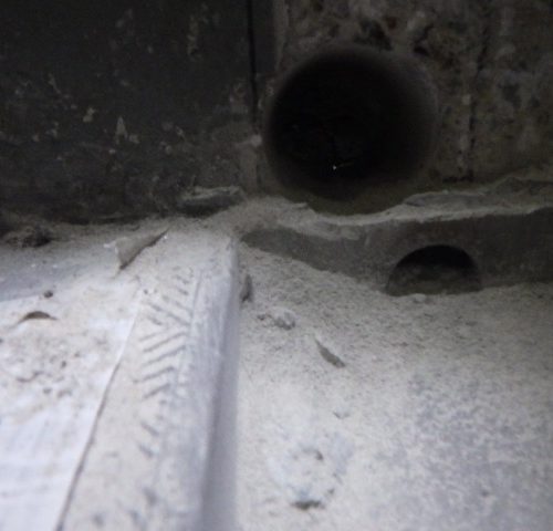 建物外への排水口を新設し、準備した枠を設置します。