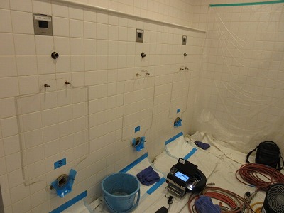しかし、通常マンション等で行う排水管洗浄と同じやり方では完全に洗浄できないという判断となり、尿石を洗浄しようということではなく、尿石を剥離するという新しい方法で作業することになりました。
