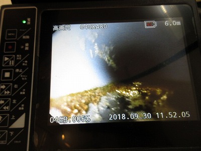 作業中カメラで排水管内を確認すると多くの尿石が溜まっており、それもすべて綺麗に剥離することが出来ました。