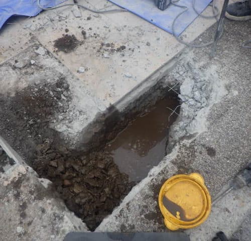 実際にその場所を掘削してみたところ、給水配管の亀裂と漏水が確認できたので、配管の交換や修理を行います。