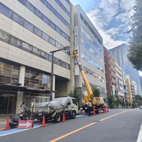 新宿区の管理物件にて、入居テナント様から袖看板の張替え依頼をいただきました。
