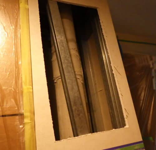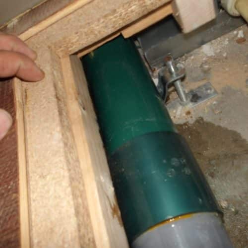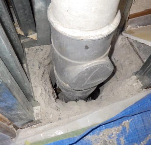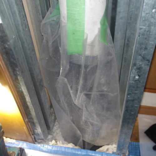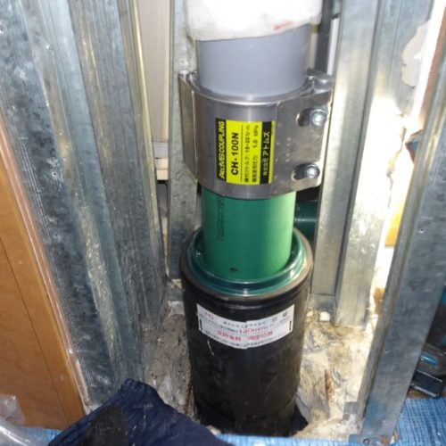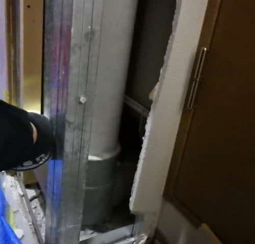 そのため、下階の壁を開口して配管下部を処理し、2フロアにまたがる工事を実施することになりました。